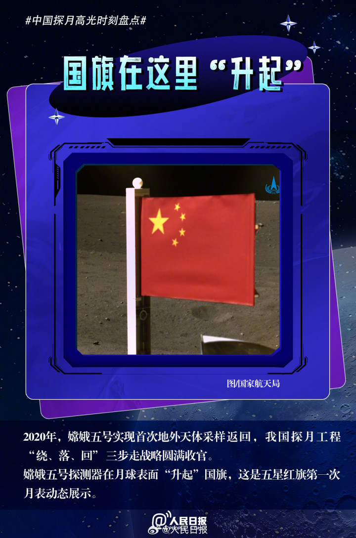 2013年12月14日,玉兔号月球车稳稳“踏”上月球表面。中国探月工程硕果累累,一次次中国探月高光时刻令人印象深刻。“嫦娥奔月”的故事不再只是神话,未完待续,我们一起期待!